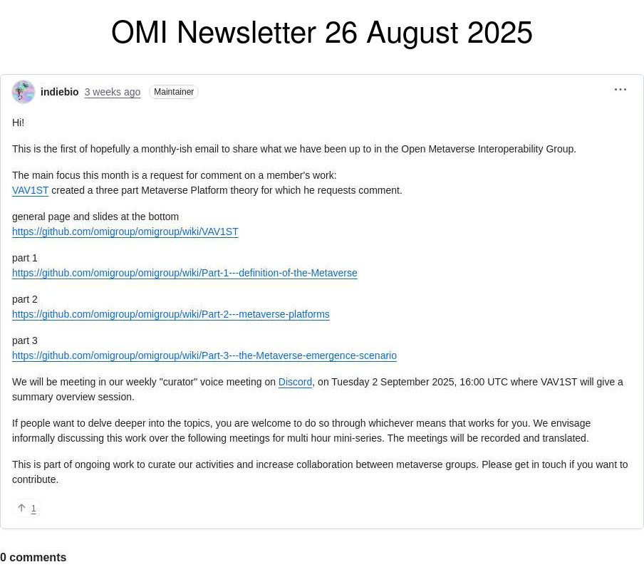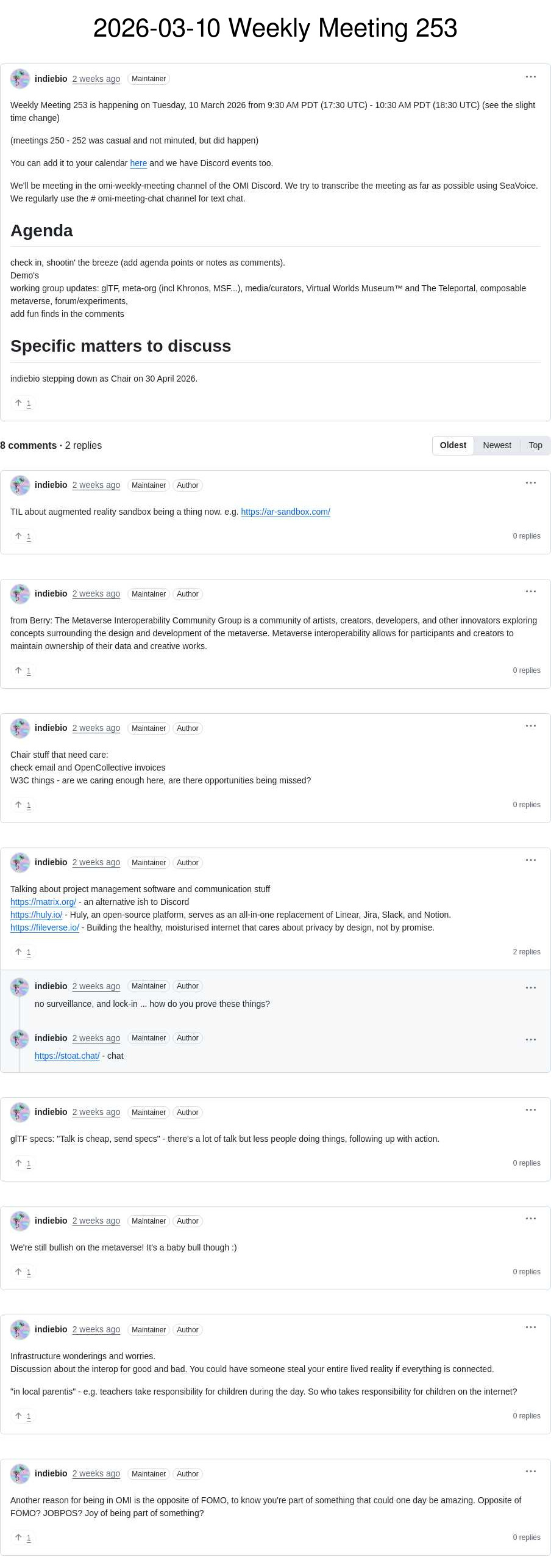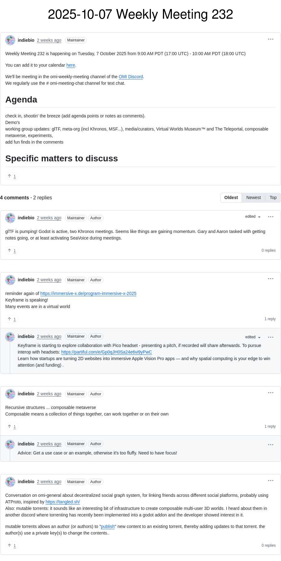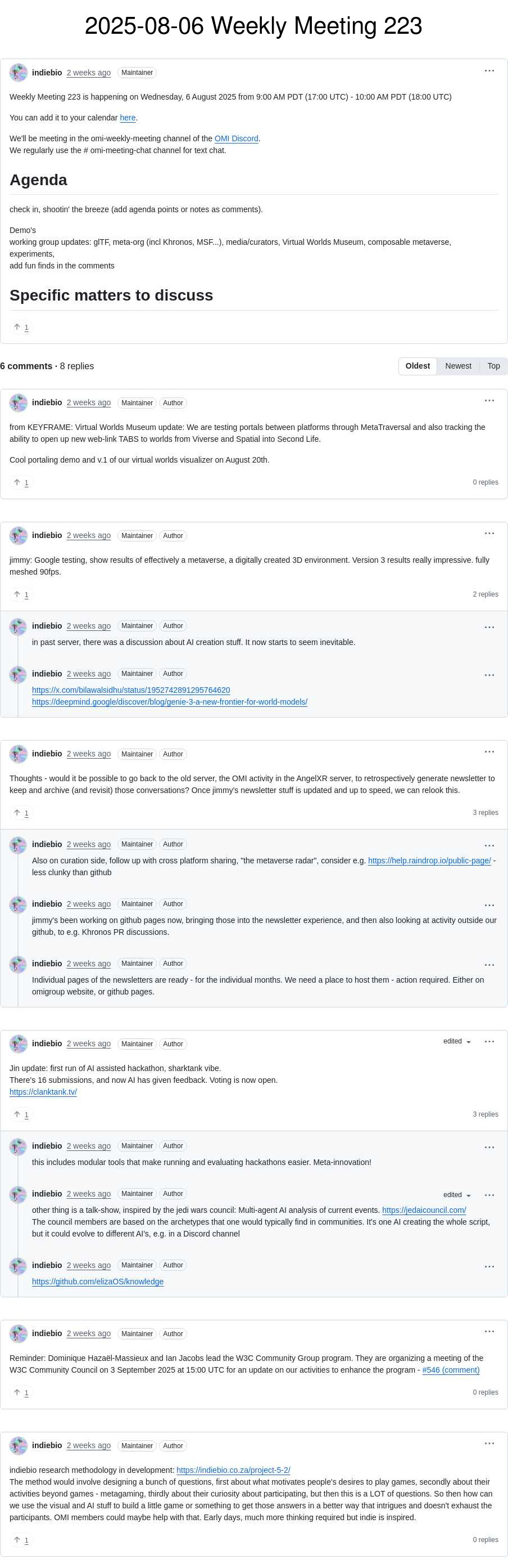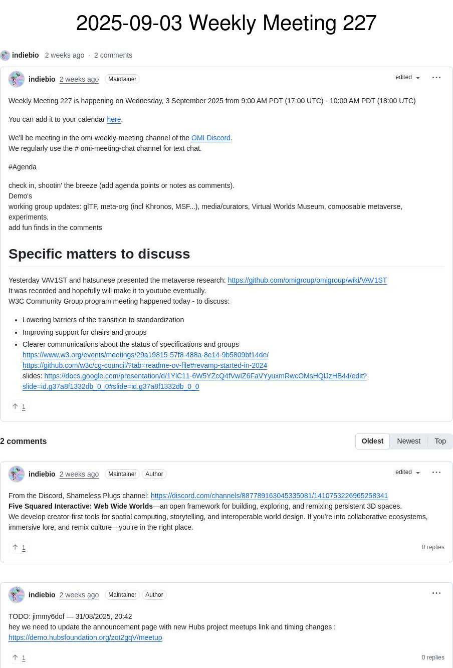 Last GitHub discussions from different repos, usually in order of 1 = last week, 2 = 2 weeks ago, etc